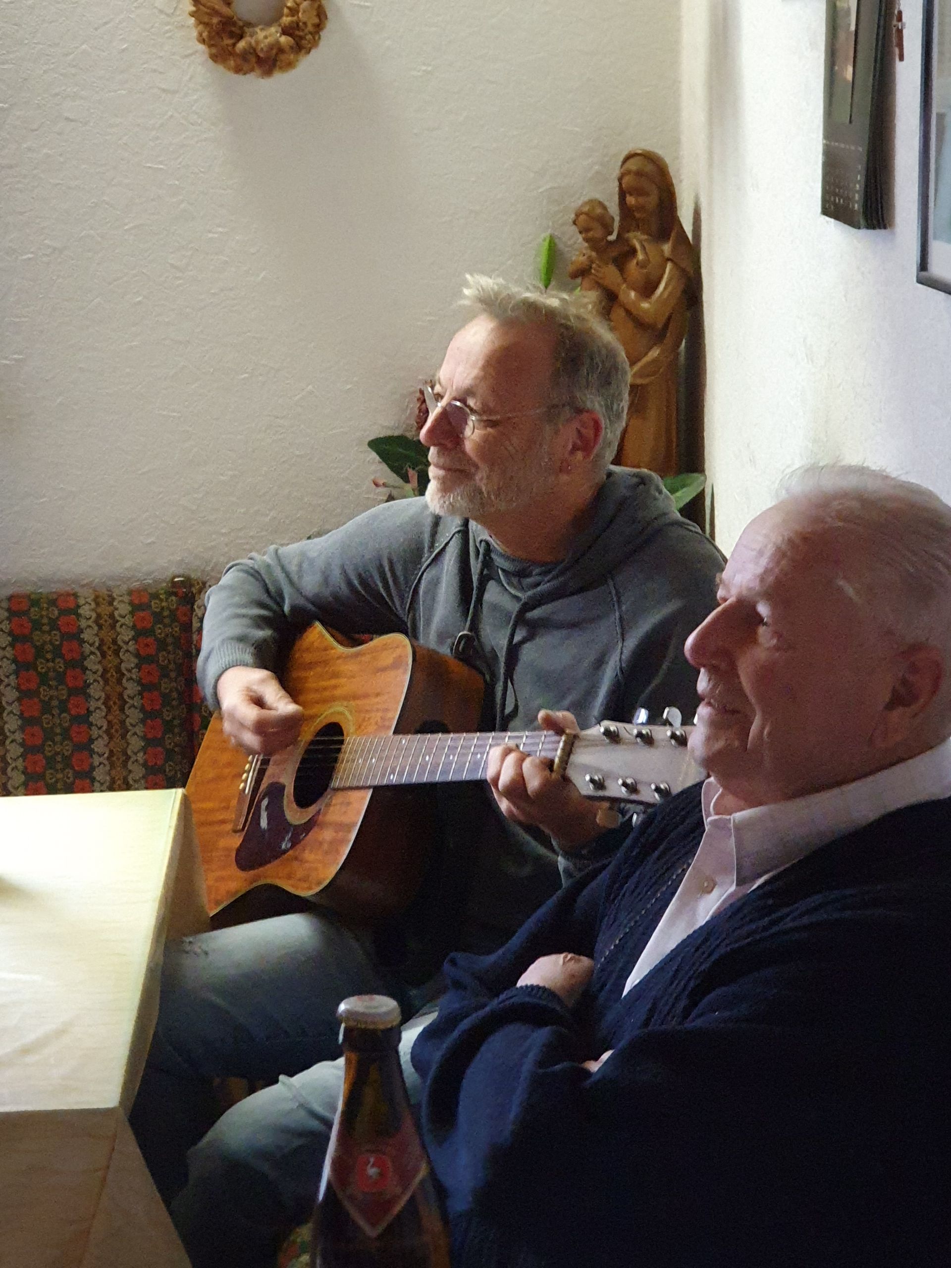 Traditionell wurde zu Speis und Trank eingeladen – natürlich mit einem Spanferkel sowie Bieren vom Fass. Richard war für die Musik verantwortlich und baute ein beachtliches Equipment auf; Thorsten gesellte sich auch dazu und begleitete Hits von Gestern und Heute mit seiner Gitarre.