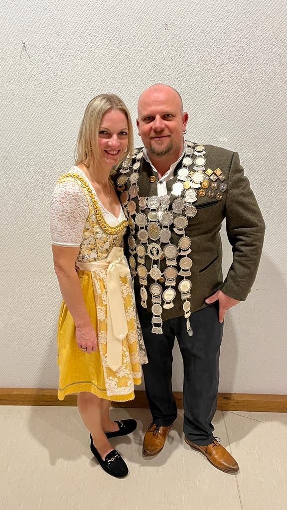 Schützenkönig 2024 wurde Mathias Burkhardt (links im Bild mit seiner Frau) mit einem Teiler von 111,0. Herzlichen Glückwunsch!